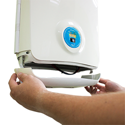 The filter should be replaced by medical personnel, as this procedure is safe and simple. The design of the recirculator housing allows filter replacement without the use of a tools.