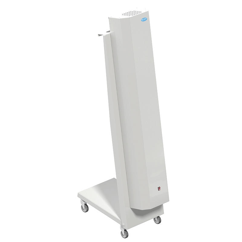 Safe when used in the presence of people. Disinfection of the air flow occurs during its forced circulation through the metal casing with the help of 2 fans. Inside the housing there are 1 lamp of 30 W - ozone-free bactericidal low pressure. Ultraviolet radiation of lamps destroys pathogens, and clean disinfected air after circulation through the maze of the duct returns to the room. For free air circulation recirculators are recommended to be placed on a wall or on a mobile platform.